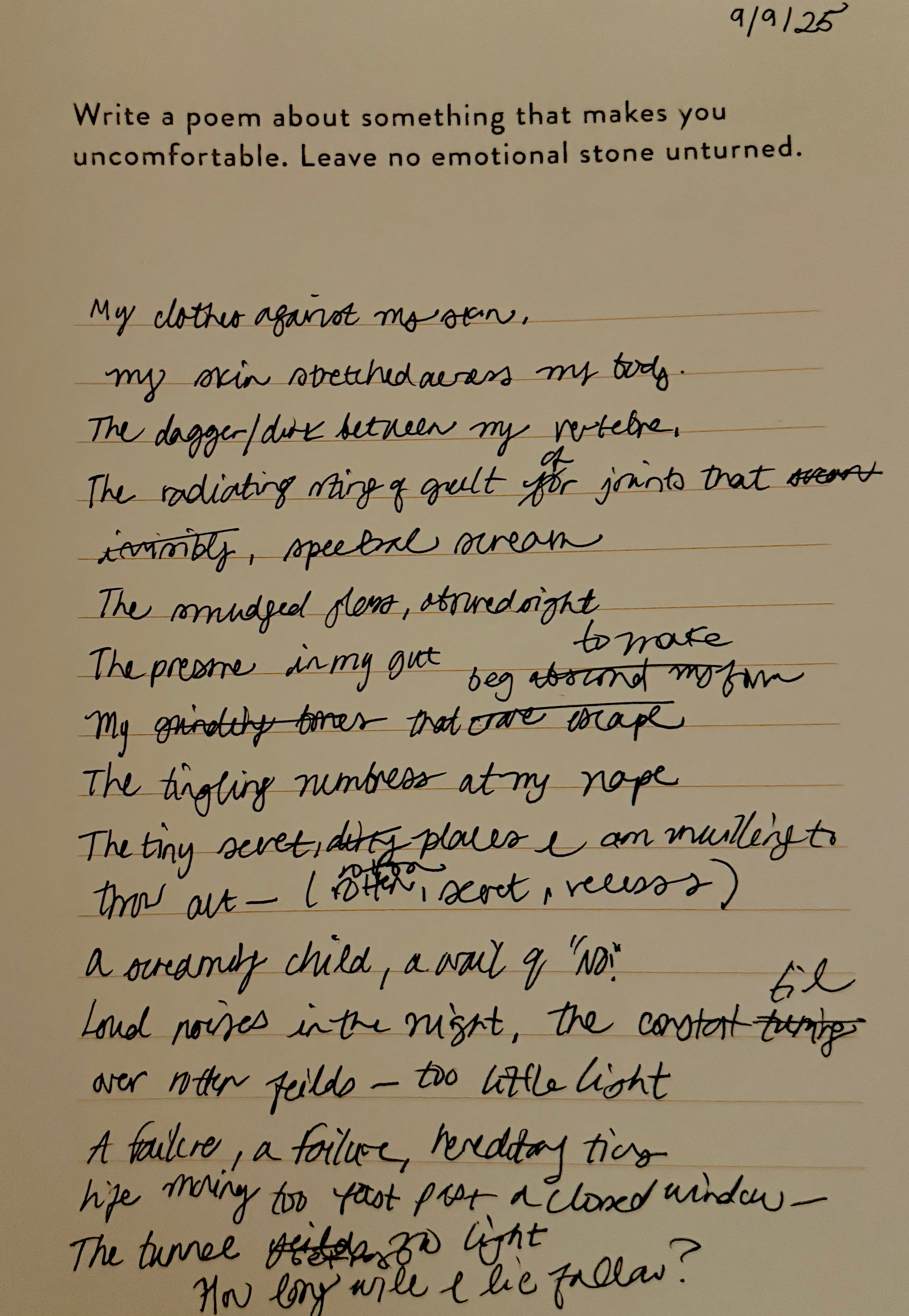 I wrote the first draft of this in about 5 minutes, just writing without worrying about rhyme or aesthetics. Whether it’s any good or not, I don’t know. Probably not. But it is honest. - Peggy